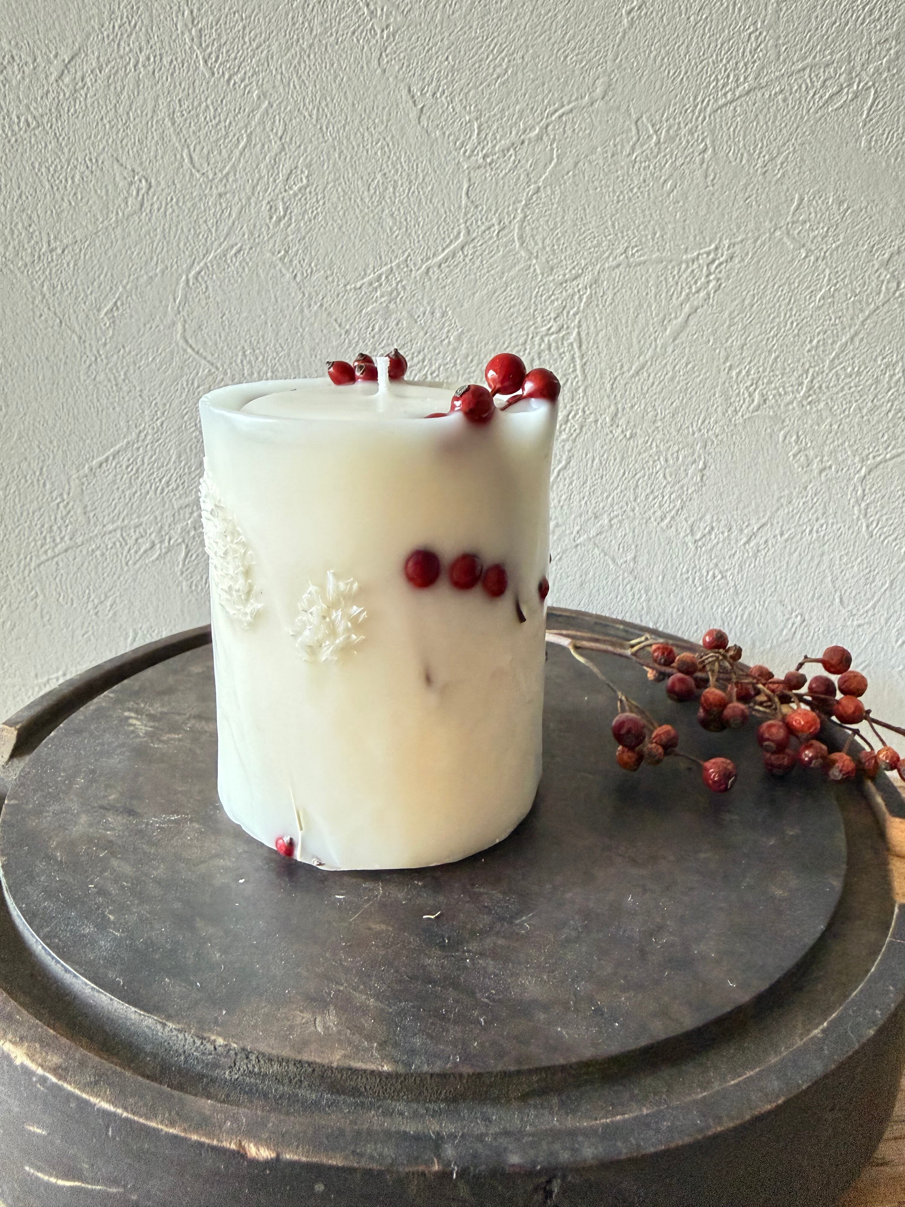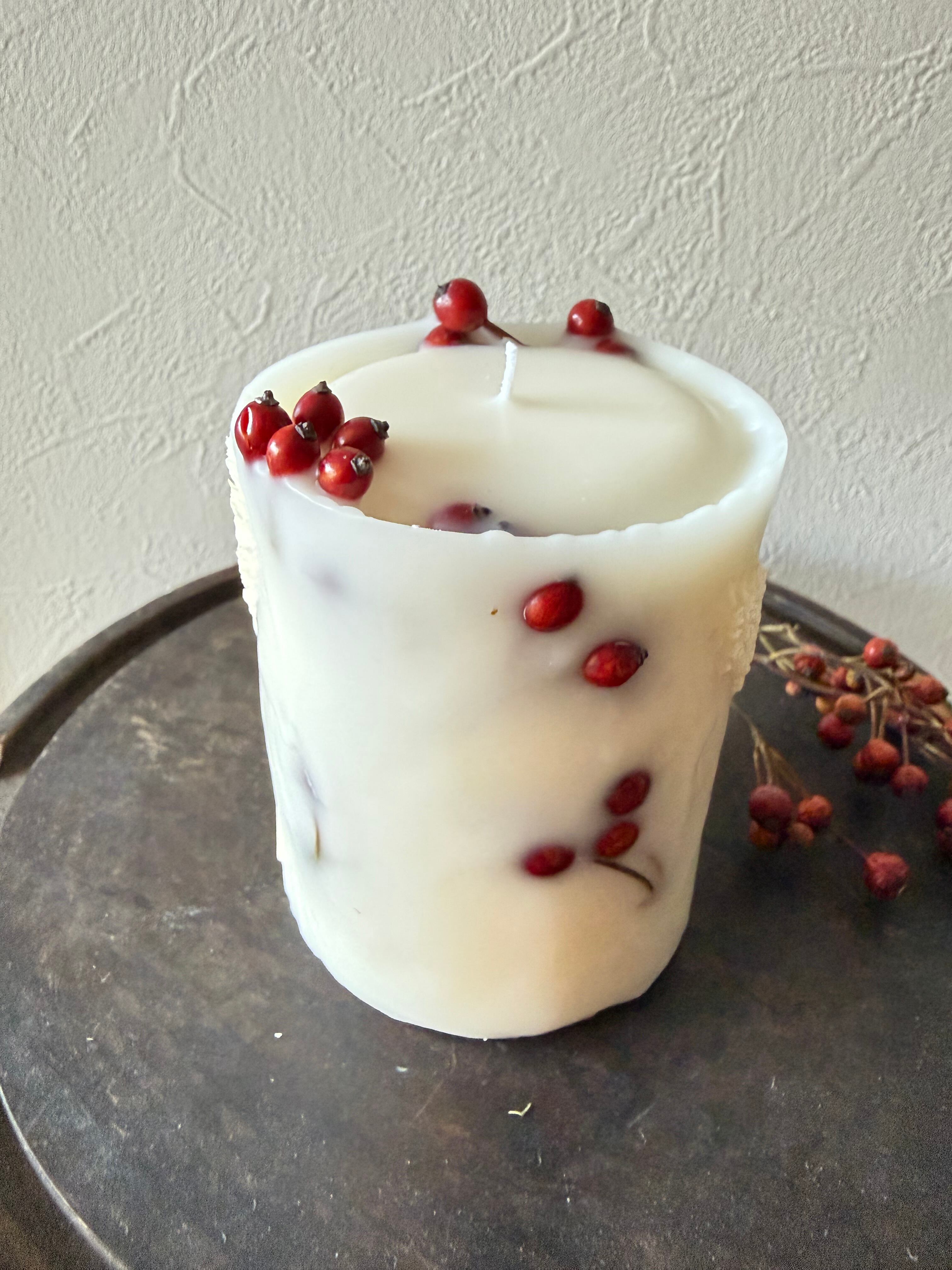 野薔薇の実と白いボアプランツを使用しました。