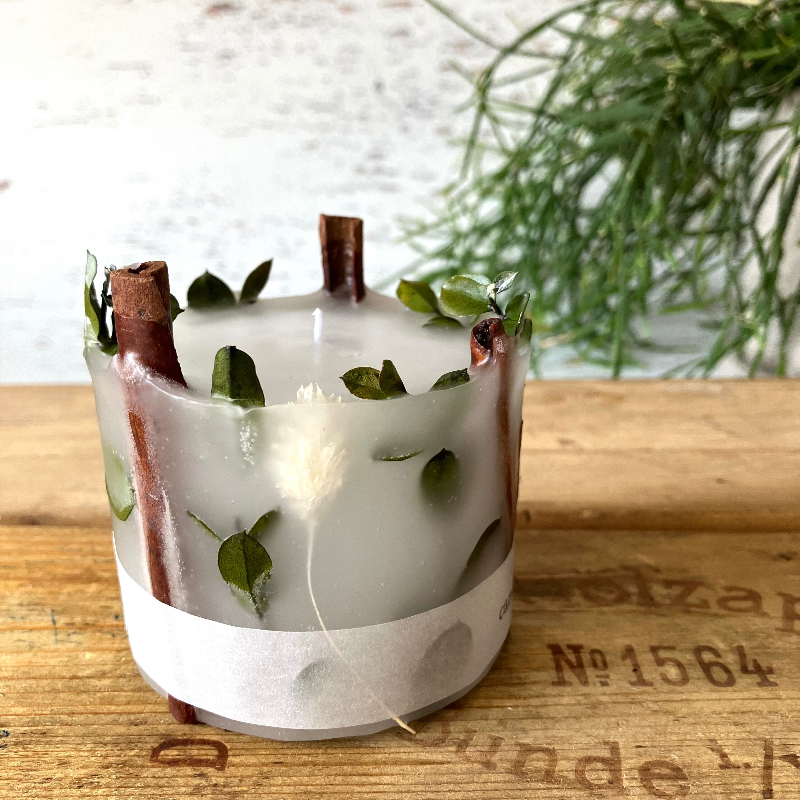 シナモンスティックとユーカリグニー、ホワイトボアプランツを組み合わせ、清々しく仕上げました。