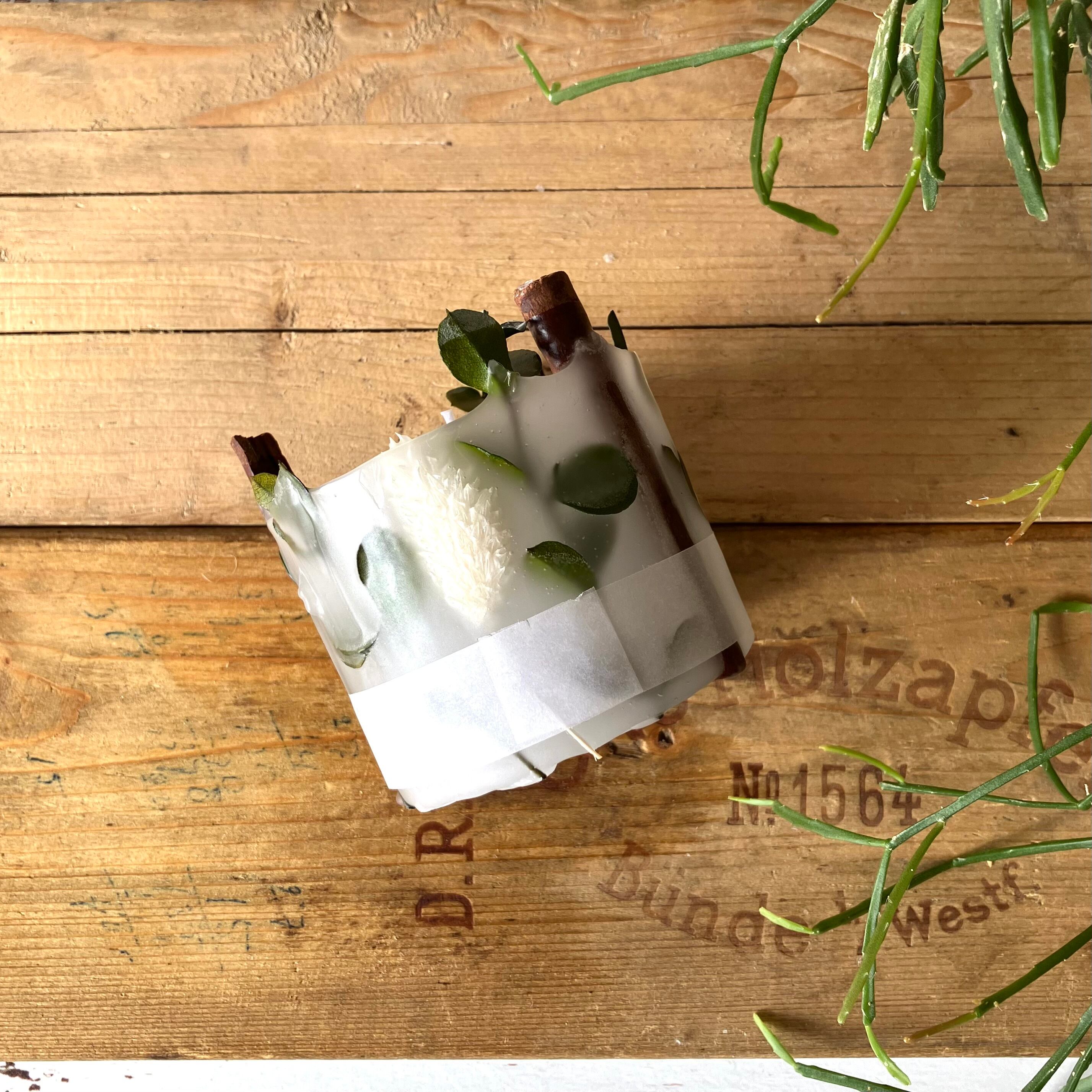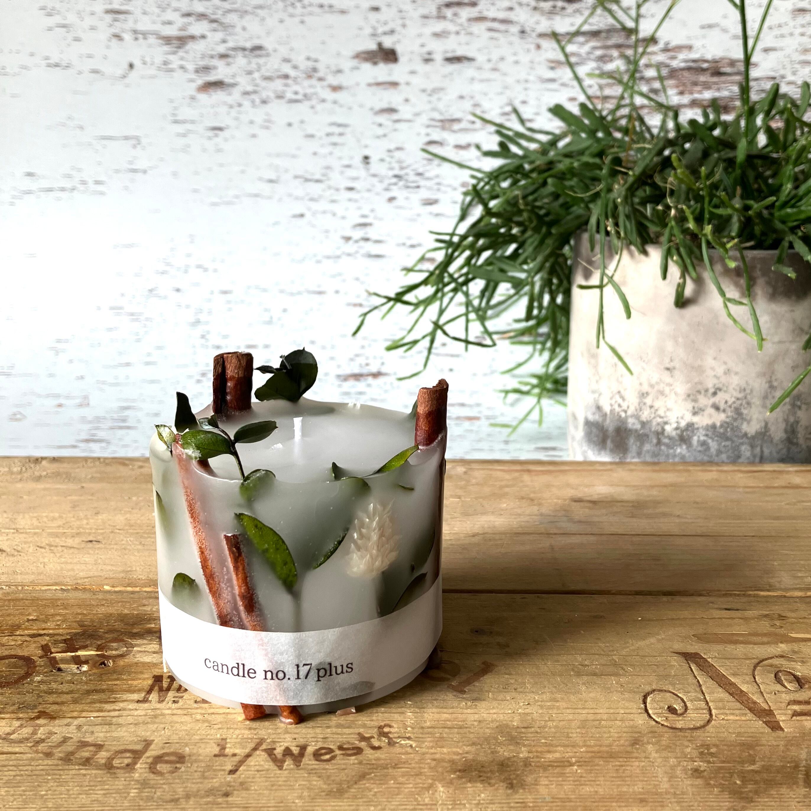 ドライフラワーがキャンドル側面に浮き上がる仕上げになっております。