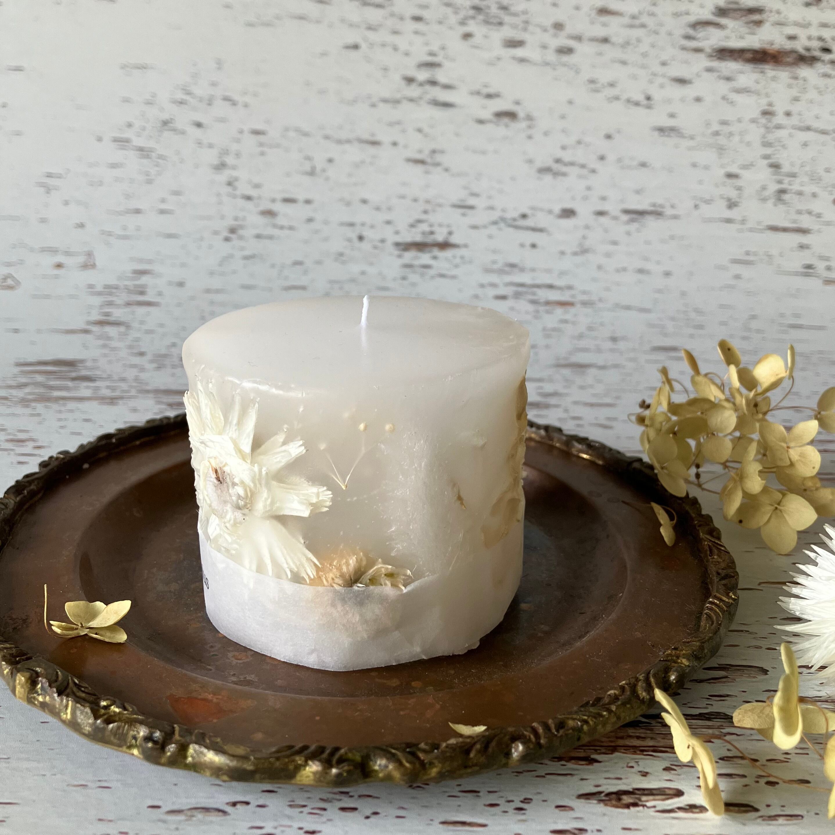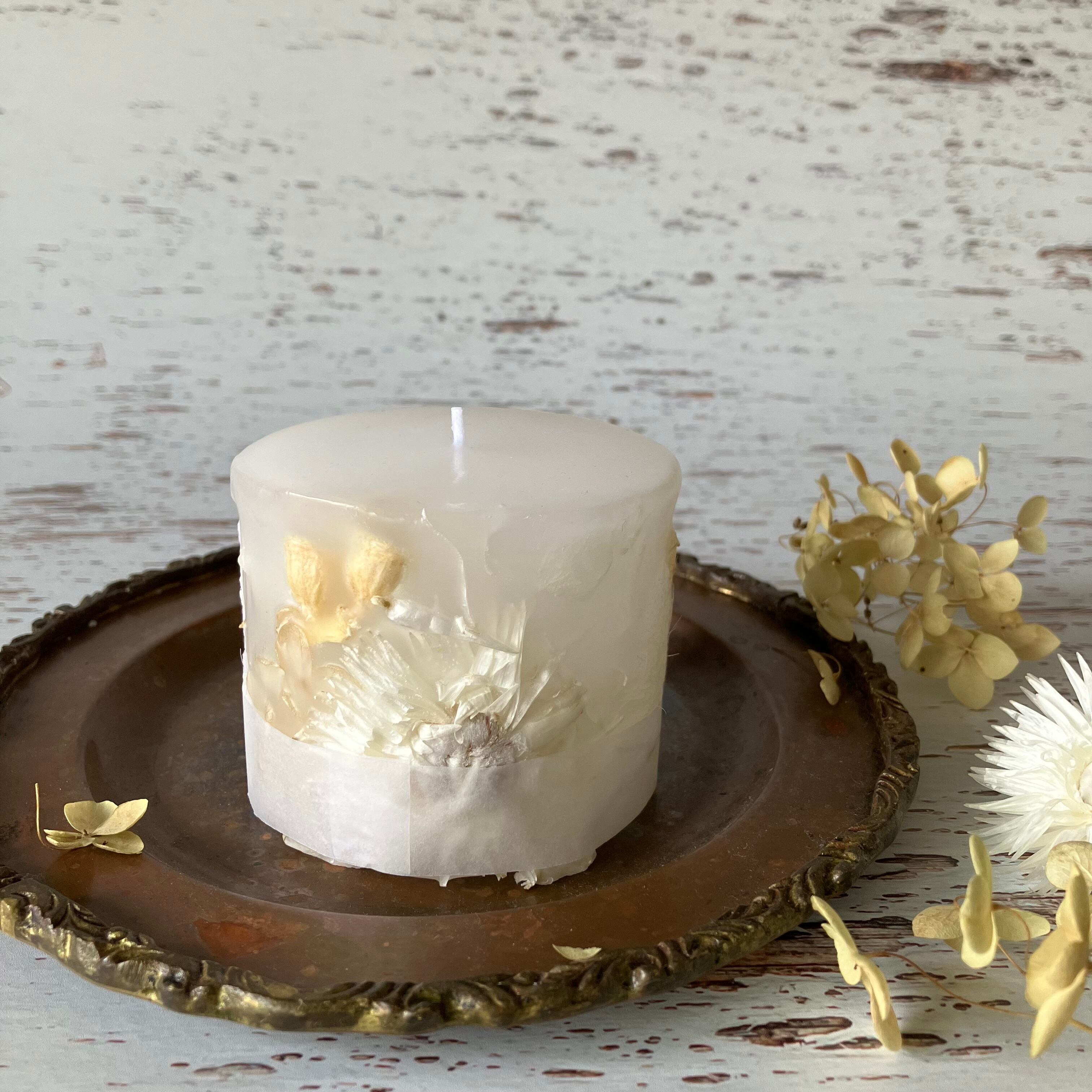 純白の雛菊とふわふわラグラスをメインに淡いベージュを取り合わせ、ナチュラルで柔らかな雰囲気に仕上げました。