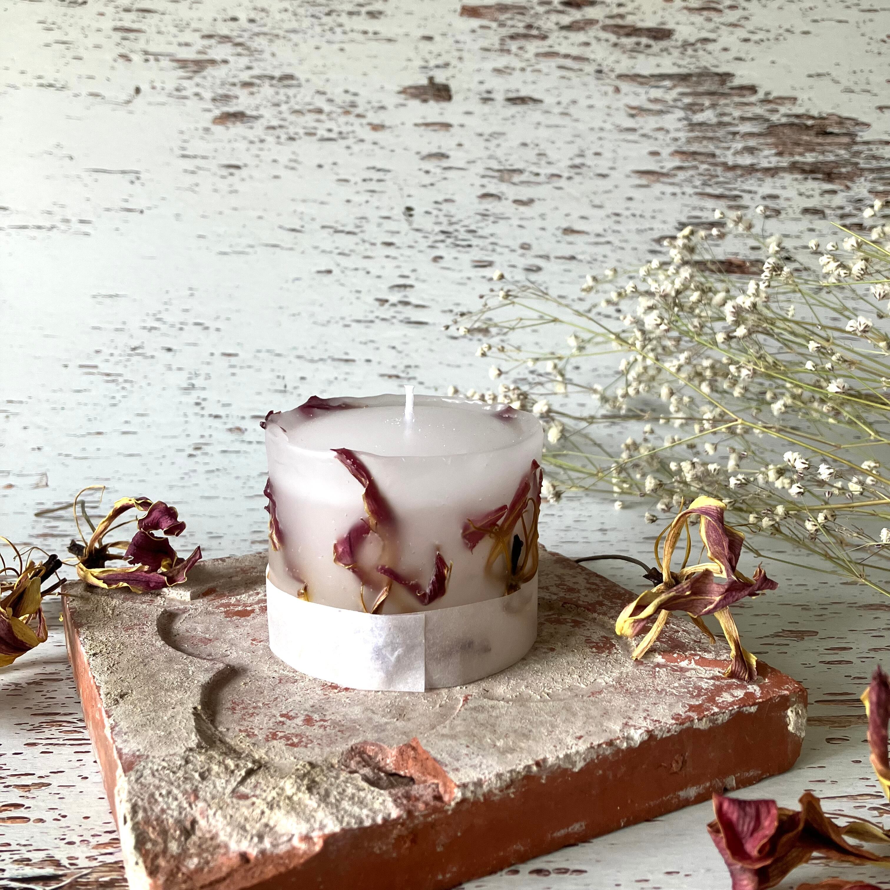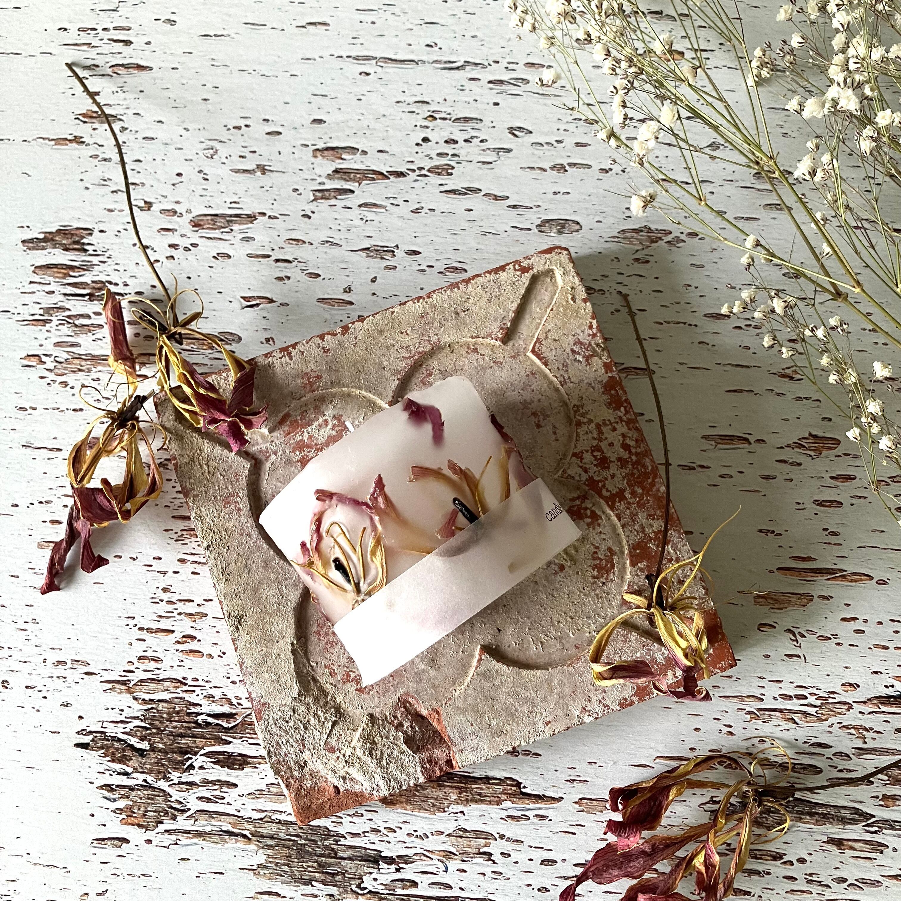 燃えるような赤色は褪せてもなおの存在感があり、キャンドルの炎を引き立ててくれます。